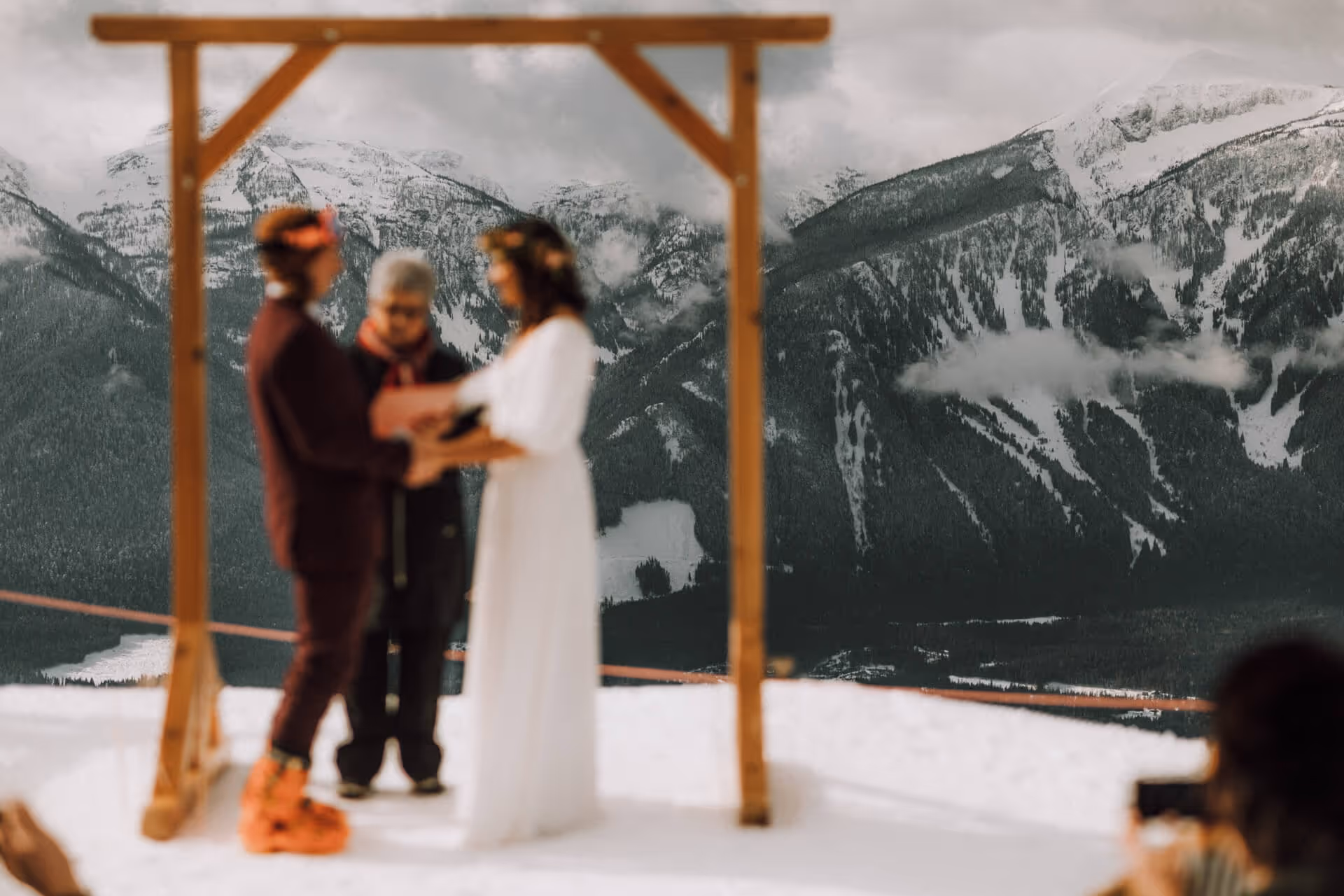 Sophie and Tarn’s ski wedding at Revelstoke Mountain Resort was one for the books. They said “I do” in ski boots and gloves, with the Monashee Mountains as their backdrop. After the ceremony, 50 guests skied down together—I guided the crew, captured fun slashing shots, and even caught the bouquet toss mid-run. The day wrapped with a golden sunset shoot in the valley flats. First wedding shot on skis... and definitely not the last.